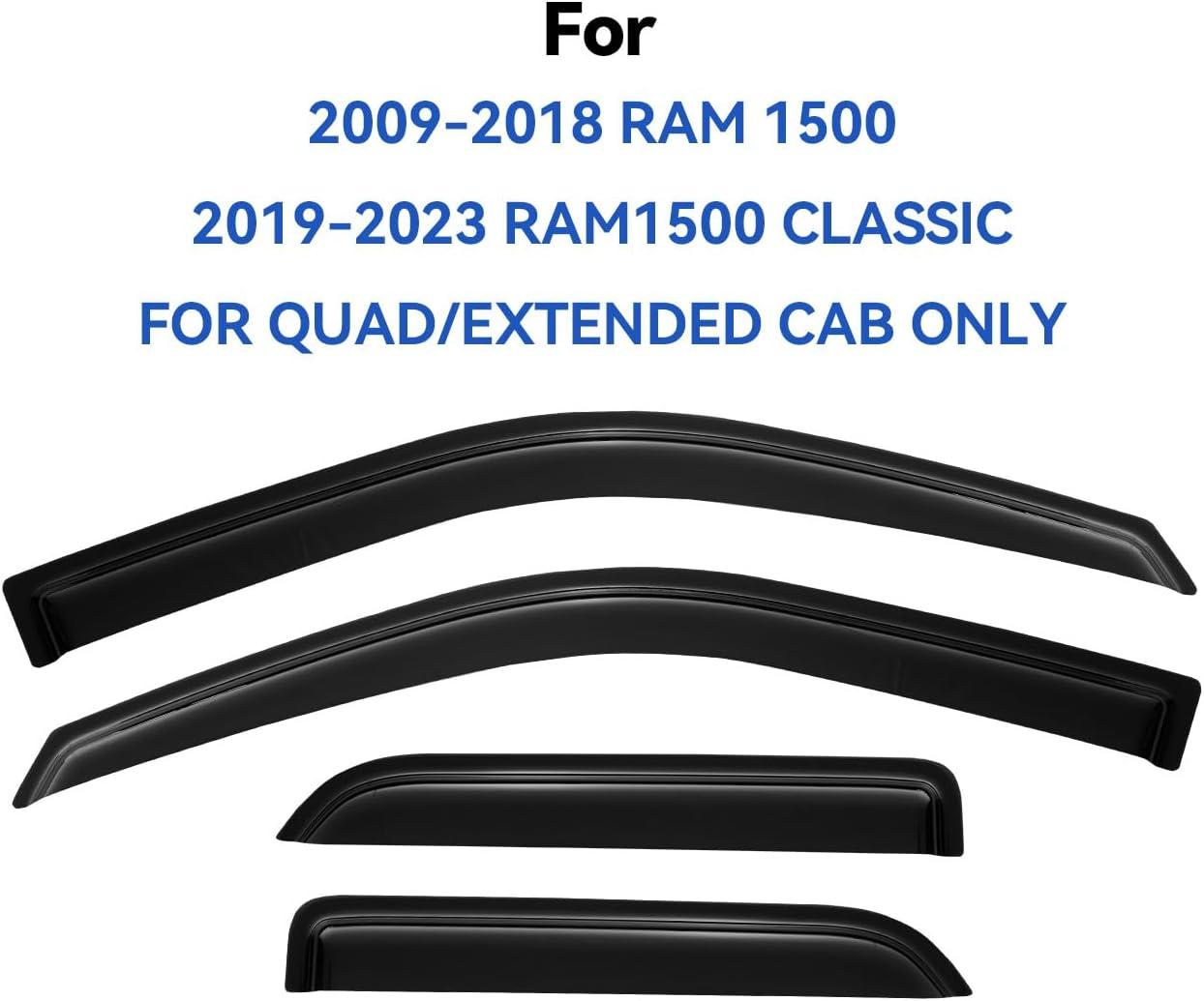 imageinChannel Window Visors Rain Guards Shield for 19931998 Ford Ranger SuperCab Window Vent Wind Deflectors Visors Shades for 9398 Ranger Extended Cab20092018 ram 1500 quad cab
