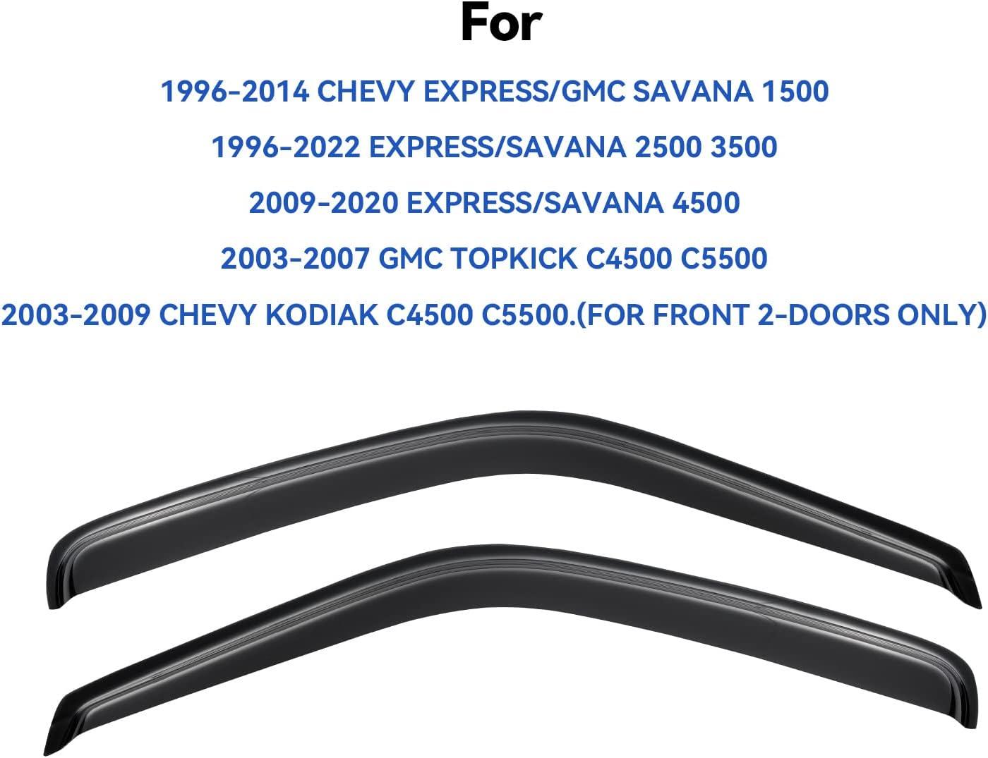 【Perfect Fit】YQAUTEC 2Pcs Window Visors fit for 1996-2014 Chevy Express/GMC Savana 1500, 1996-2022 Express/Savana 2500 3500, 2009-2020 Express/Savana 4500, 2003-2007 GMC Topkick C4500 C5500, 2003-2009 Chevy Kodiak C4500 C5500.(For Front 2-Doors Only)