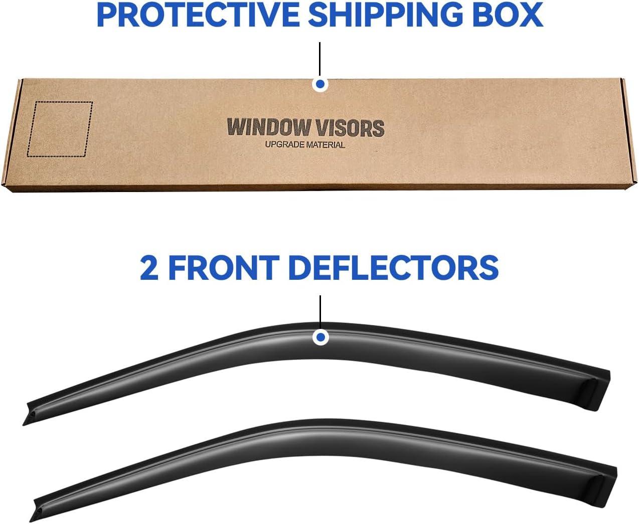 【Easy Installation】Outside Mount Style. No drilling or special hardwares required. Test fit the visors first to make sure it's the right model before you tape them on.[NOTE: Don't wash your car 24 hours after installation.]