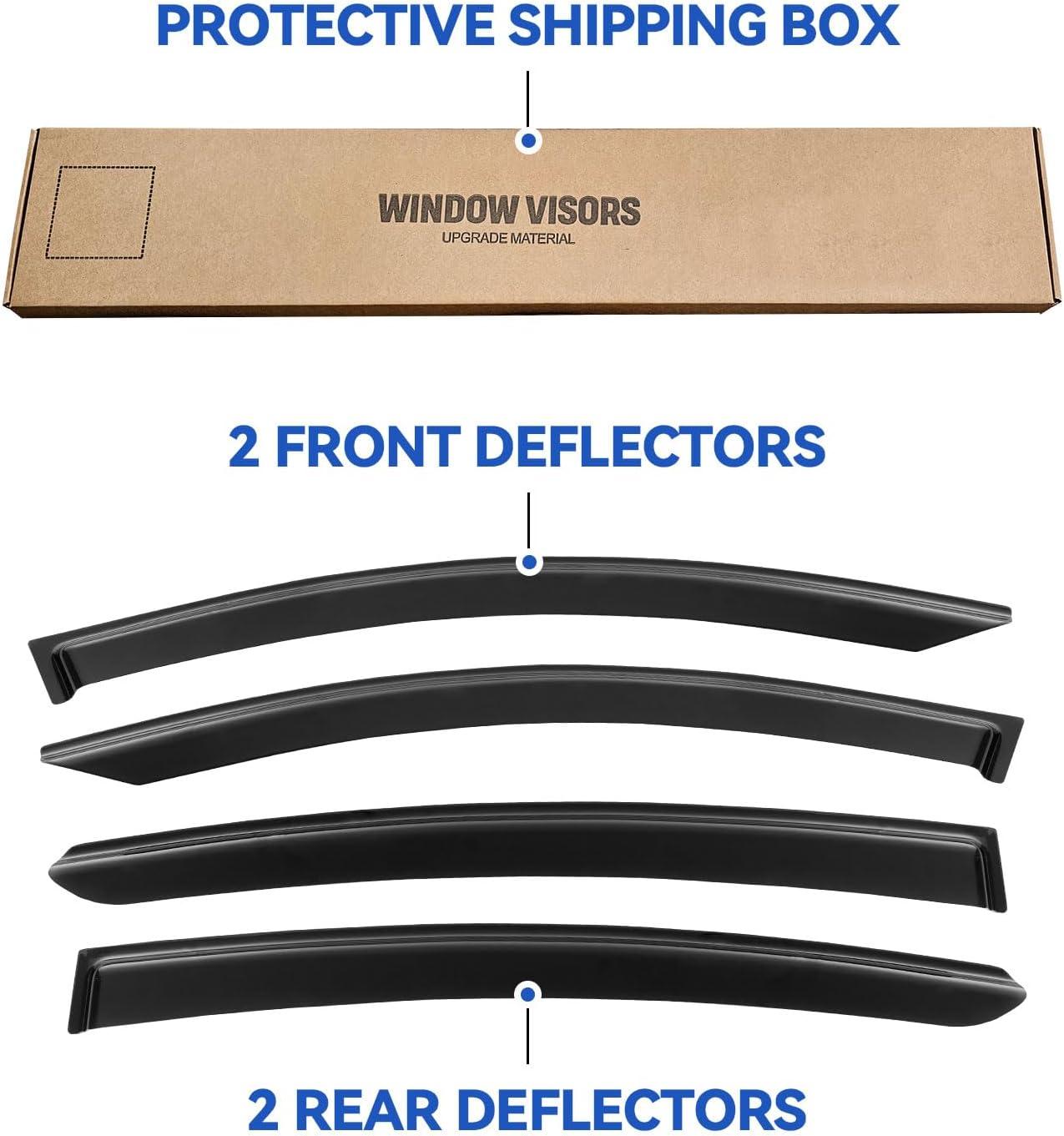 【Easy Installation】Outside Mount Style. No drilling or special hardwares required. Test fit the visors first to make sure it's the right model before you tape them on.[NOTE: Don't wash your car 24 hours after installation.]